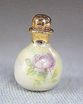 Perfume bottle with stopper - Mother of Pearl lustre with Pink rose design.