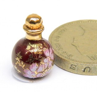 Perfume bottle with stopper - Red lustre with pink and real gold, "Delicia" design.
