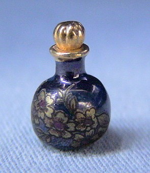 Perfume bottle with stopper - Rich Blue lustre with gold & red floral design.
