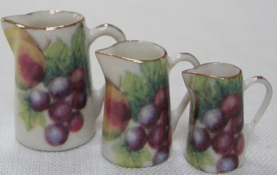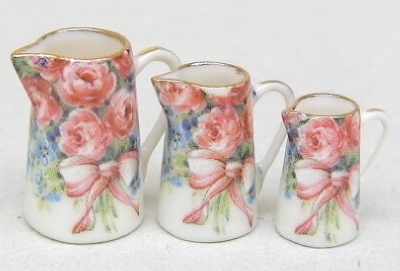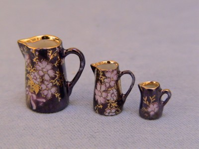Set of three jugs - Rich blue lustre with pink and real gold, "Delicia" design.