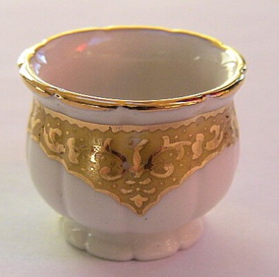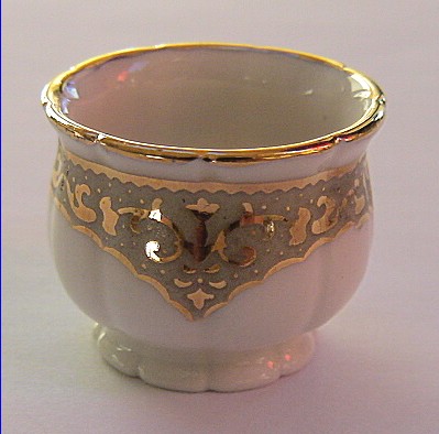 Plant pot cover, 22mm tall - Navy blue and real gold border.£5.99