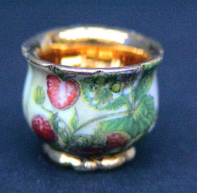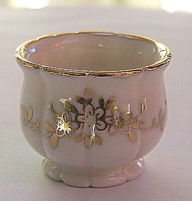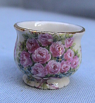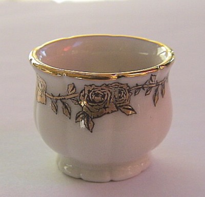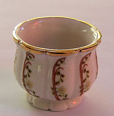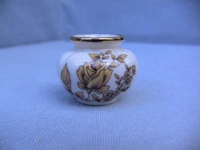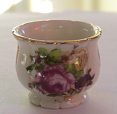 Plant Pot Cover, 22mm high, with a rose and gold leaf design.£5.99