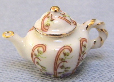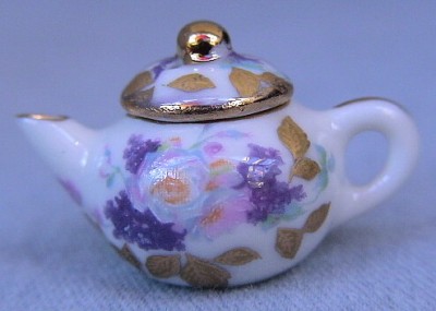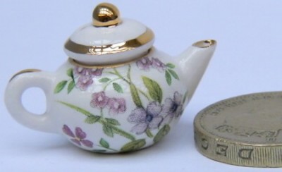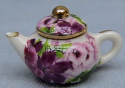 Traditional Round teapot - Lilac and pink floral design