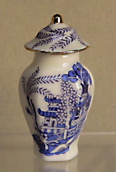 34mm (1.3") Temple Jar with lid - white with blue Willow pattern