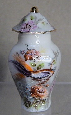34mm (1.3") Temple Jar with lid - white with Bird of Paradise pattern