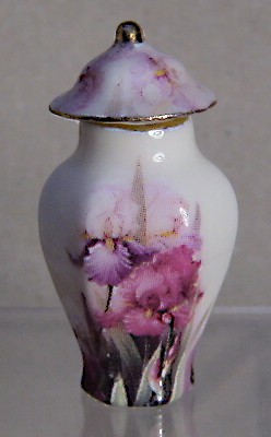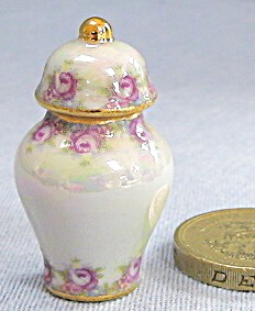 34mm (1.3") temple jar with lid - Mother of Pearl lustre with Pink rose design.