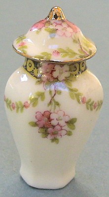 Small Temple Jar with lid - Mother of pearl lustre with pink rose design