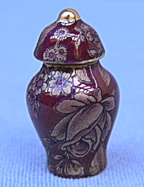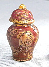 34mm (1.3") Temple Jar with lid - Rich red lustre and gold roses.