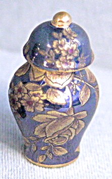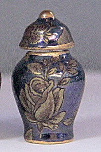 34mm (1.3") temple jar with lid - Dark blue lustre and gold Roses.