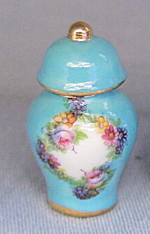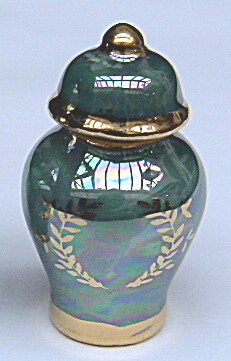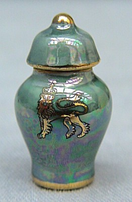 25mm (1") Temple Jar with lid - Tourquoise lustre with gold griffin design. Edged with real gold lustre.
