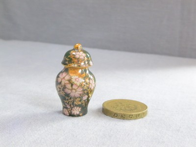 25mm (1") Temple Jar with lid - Green lustre with pink & gold flowers.