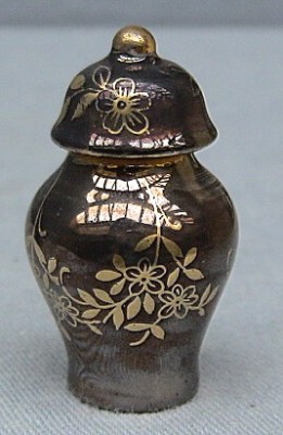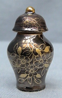 25mm (1") Temple Jar with lid - Gunmetal grey lustre with gold roses.