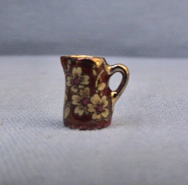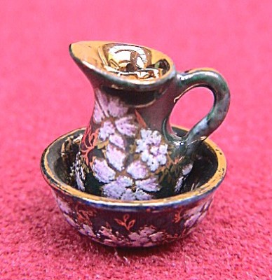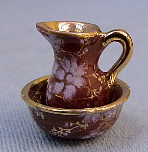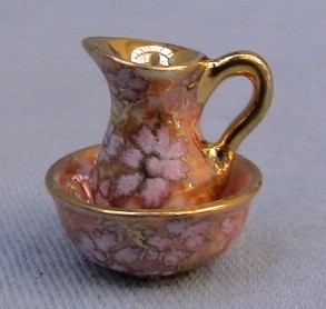 1/24th scale Jug and bowl set - Rich red lustre with pink and real gold, "Delicia" design.