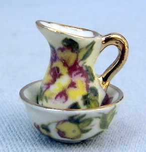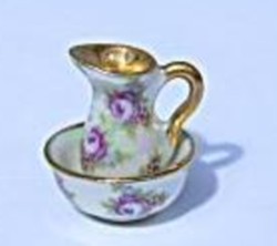 1/24th scale jug and bowl set - Mother of Pearl lustre with pink roses.