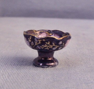 Fruit Bowl on stand - Blue lustre with pink and real gold, "Delicia" design.£6.99
