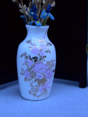 This is a 1/12th scale dolls house miniature, hand decorated in the UK, with an all-over, pink and gold "Delicia" decal. It is guilded with real gold.