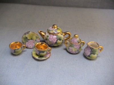 This is a 1/12th scale dolls house miniature, hand decorated in the UK, with an all-over blossom design. It is guilded with real gold.