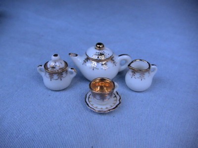 This is a 1/12th scale dolls house miniature, hand decorated in the UK, with a traditional, gold border design. It is gilded with real gold lustre.