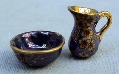 1/24th Jug and bowl - Navy lustre with gold, "Provence" design.