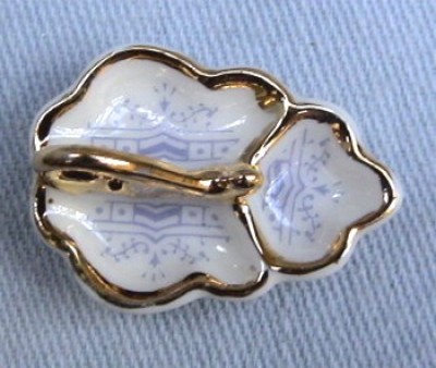 This is a 1/12th scale dolls house miniature, hand decorated in the UK, with the blue, "Titanic" print. It is edged with real gold lustre.