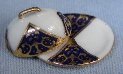 This is a 1/24th scale dolls house miniature, hand decorated in the UK, with a navy and real gold border design. It is guilded with real gold.