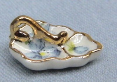 This is a 1/12th scale dolls house miniature, hand decorated in the UK, with a lovely, delicate blue, Iris design. It is finished with real gold lustre.