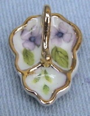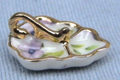 This is a 1/12th scale dolls house miniature, hand decorated in the UK, with a lovely, lilac daisy design. It is guilded with real gold.