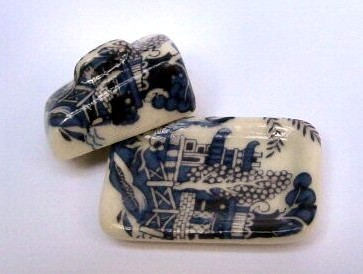 Cheese dish with lid - Traditional "Willow Pattern" design.